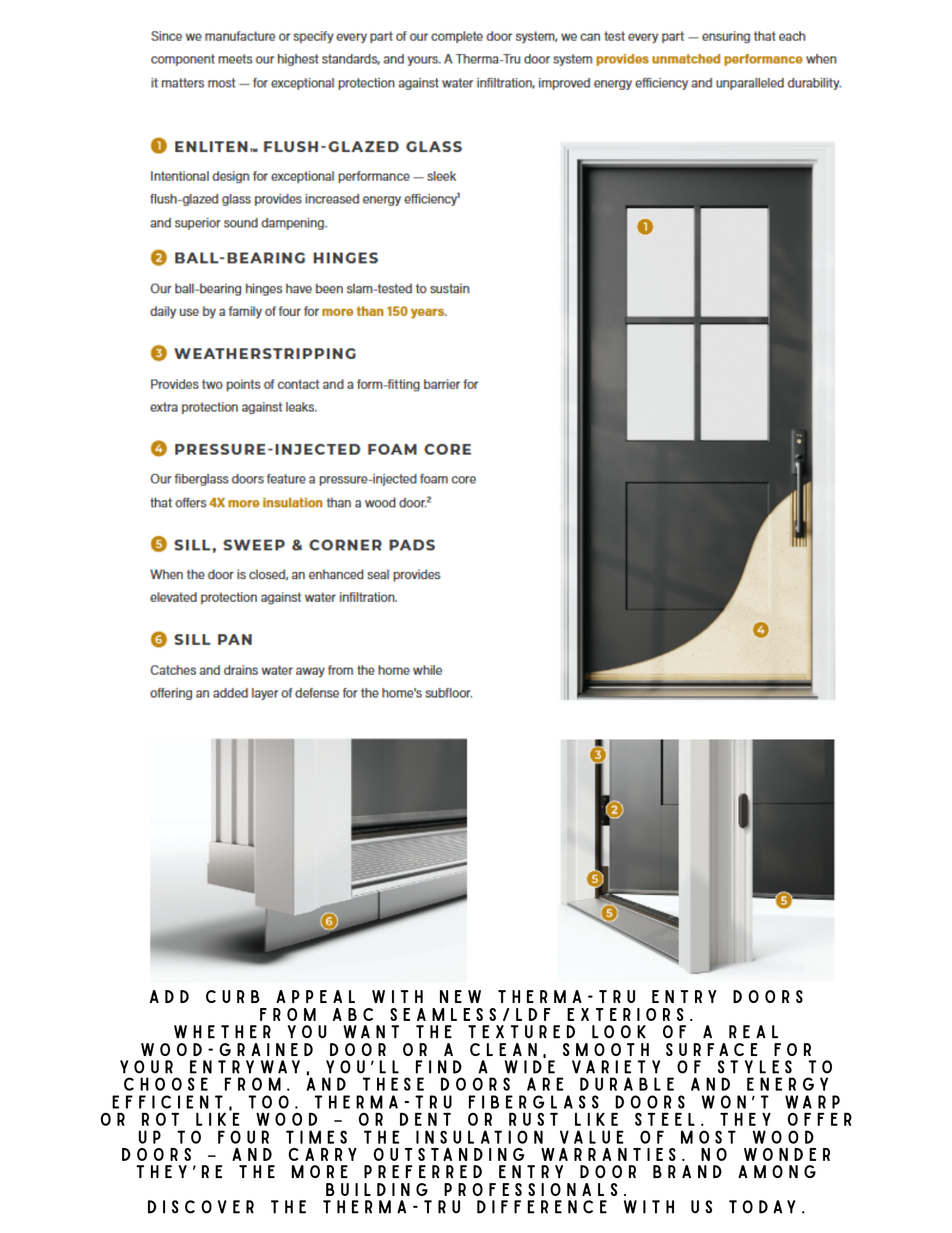 - Exterior Entry Doors — Durable and secure, available in many styles and finishes.